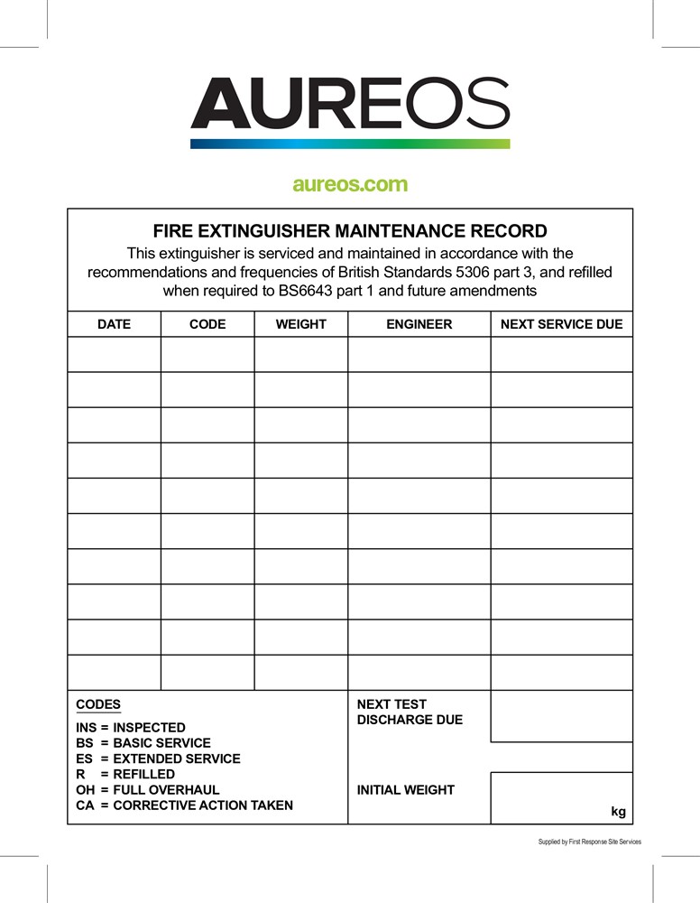 Fire Extinguisher Record 150mm X 200mm
